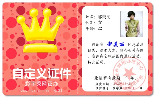自定义证件_彩字秀网证办
